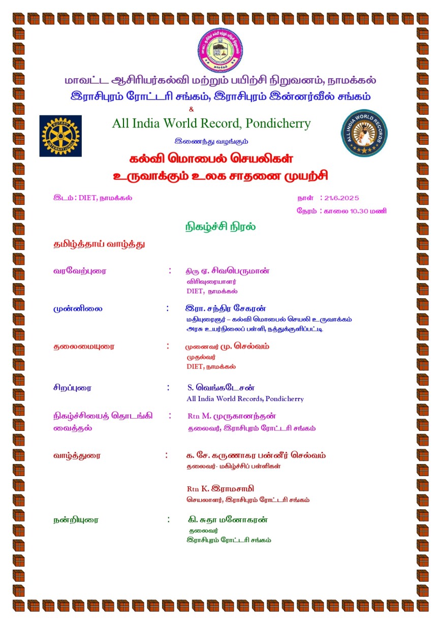 World Record Program for Creating Mobile Educational Apps at DIET, Namakkal on 21.6.2025.