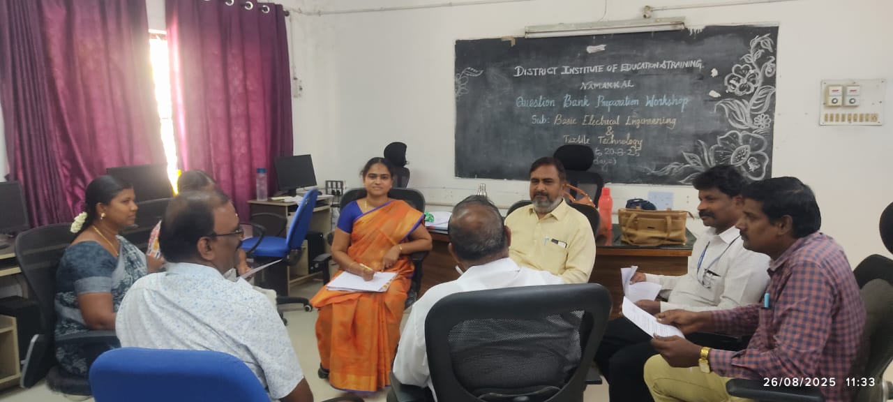 District Institute of Education and Training in Namakkal began operations in 1989 under GO.Ms.No.1799, Edn Dt: 7.12.1988. It was established on 19.12.1988 and spans 4.38 acres at 53, S.P.Pudur, Thillaipuram, Namakkal, Tamil Nadu (Latitude: 11.214836, Longitude: 78.16536). The institute comprises well-built structures covering 36,770 square feet, including nine blocks housing various facilities such as administrative offices, classrooms, auditorium, labs, staff quarters, and a playground. The Principal heads the institution, with the most senior Senior Lecturer serving as Vice Principal. Additionally, there are 6 Senior Lecturers and 10 Lecturers working within the institution.