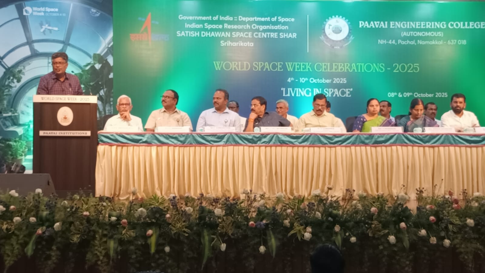 Dr M. Selvam, Principal , DIET, NAMAKKAL gave Special address in the valedictory function of Living in Space Expo in commomerating the World Space Week (October 4- 10) at Paavai Engineering college, Pachal on 09.10.2025.