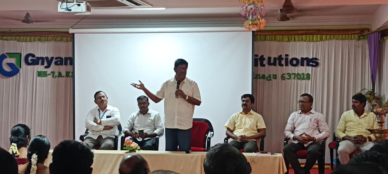 Dr M. Selvam, Principal addressed the salient features of NMMS to the Teachers who act as SCchool Nodal teachers for NMMS at Gnanamani Engineering college on 14.8.2025.
