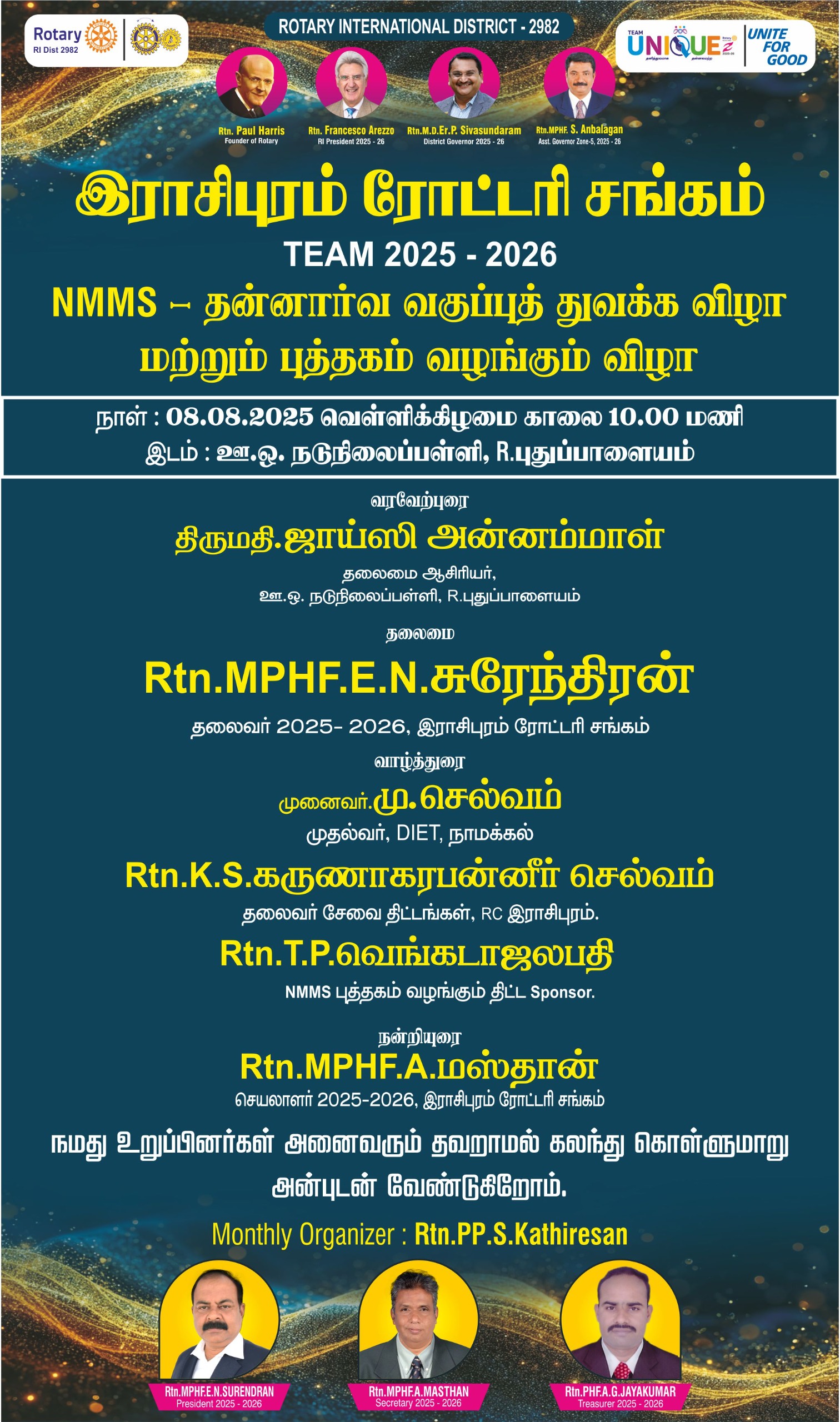 NMMS Coaching Class inauguration and Material distribution function at PUMS, R. Pudupalayam, Rasipuram on 08.8.2025.