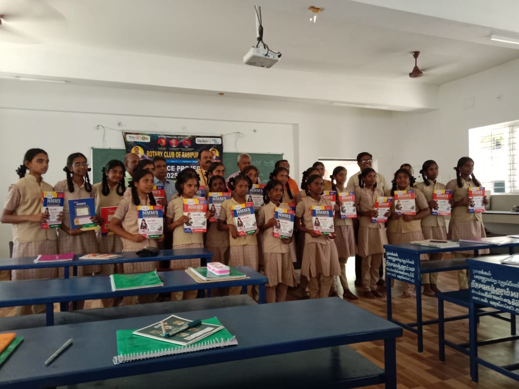 'Sendai Super 25' project is initiated in GGHSS, Sendamangalam, Namakkal district on 26.10.2024. The aim of the project is to achieve NMMS scholarship 25 out of 25. NMMS materials worth of Rs 25000/ is already given to 25 girl students with the sponsor of Rotary Club of Rasipuram. Mr Manikandan, BT taught MAT to the candidates who are going to participate in scholarship test.