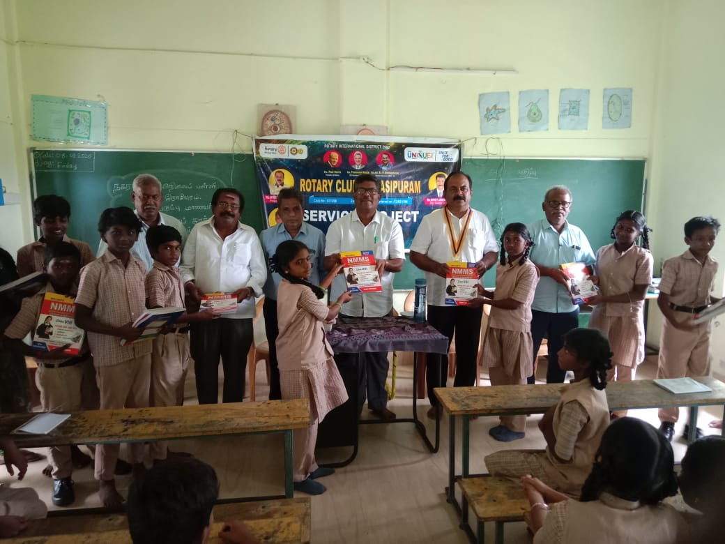 NMMS materials distributed to 8 students of PUMS, Kaattur, Rasipuram on 08.8.2025.