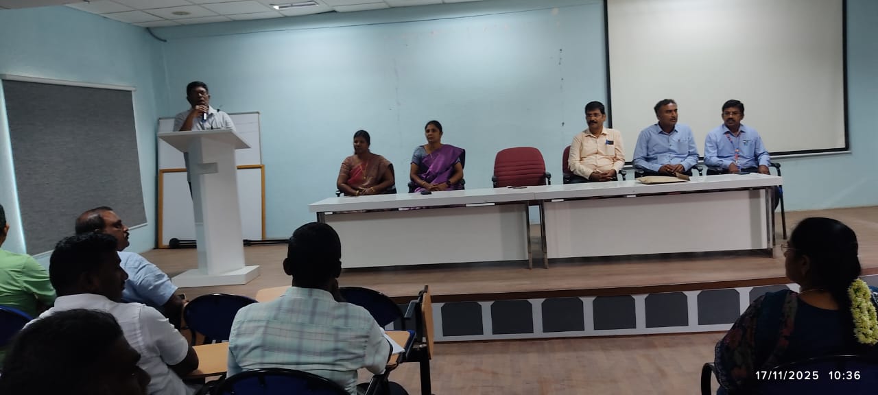 Dr M. Selvam, Principal addressed the salient features of NMMS to the Teachers who act as SCchool Nodal teachers for NMMS at Gnanamani Engineering college on 14.8.2025.