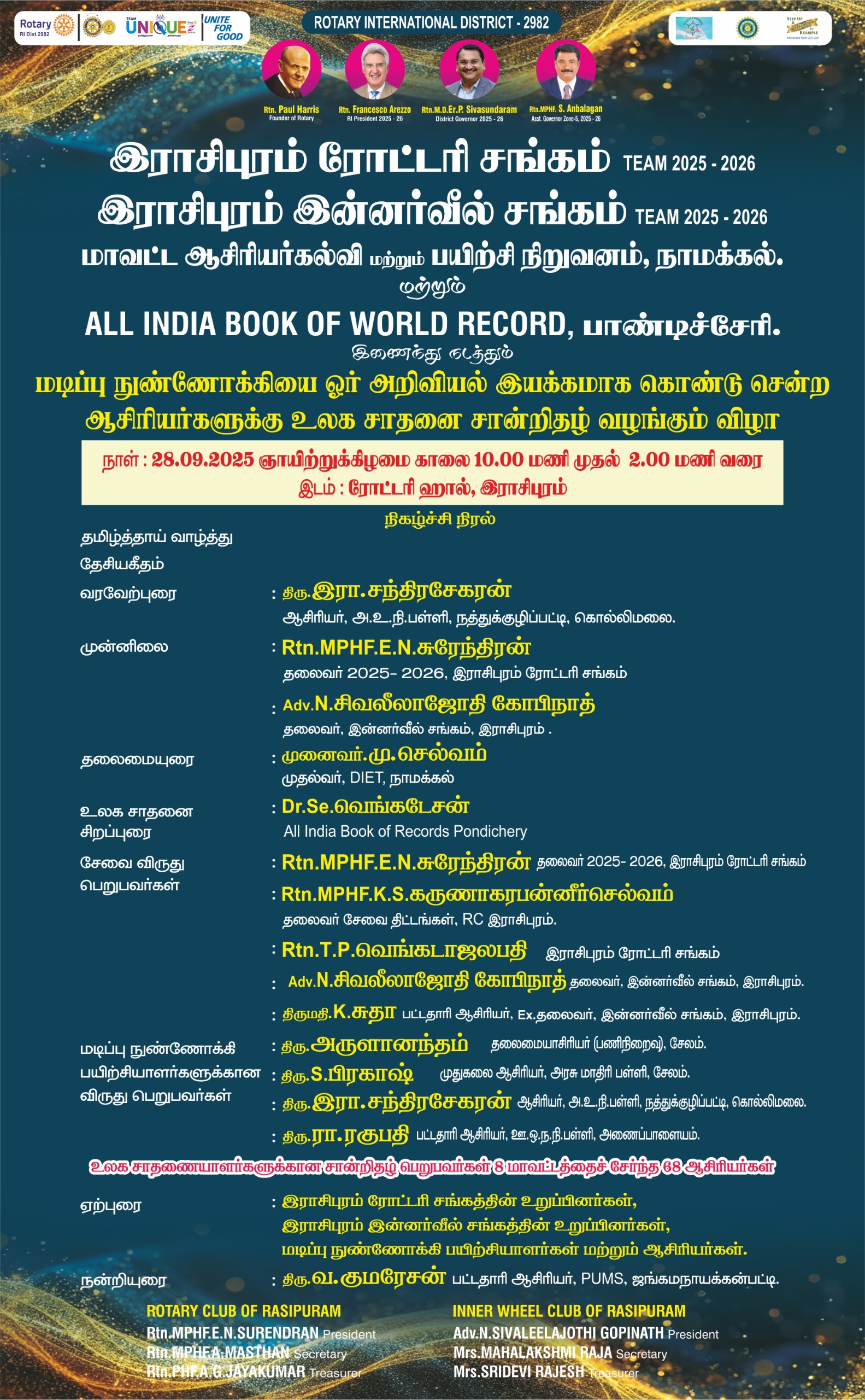 நாமக்கல் மாவட்ட ஆசிரியர்கள் சார்பில் ரோட்டரி – இன்னர் வீல் நிர்வாகிகளுக்கு விருது