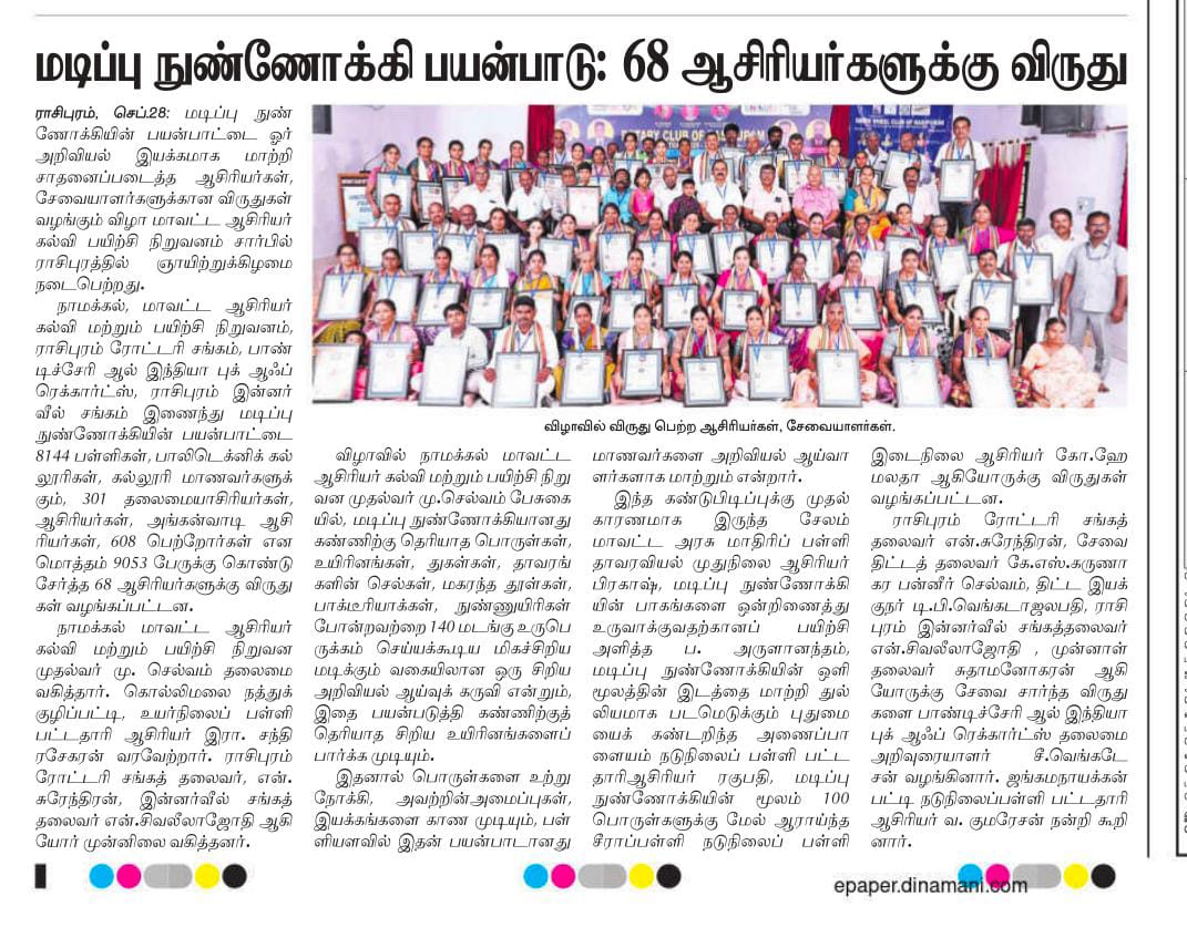 மடிப்பு நுண்ணோக்கி பயன்பாடு: 68 ஆசிரியர்களுக்கு விருது